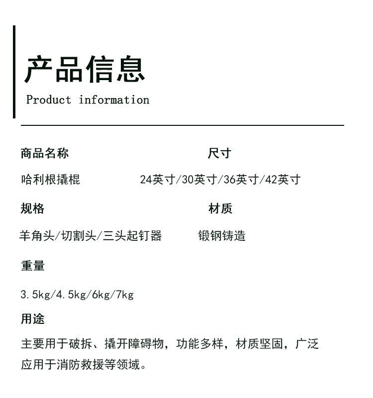 消防破拆哈利根撬棍抢险救灾24/36寸手动铁铤地震救援长柄起钉器